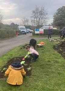So far, we have dug some flower beds, made some beetle banks and made the structure of a bug hotel. The pupils have helped plant bulbs, flowers and plants that will flower later in the year, and classes have got lots of plans to stuff the bug hotel with materials, make log-pile habitats, a hedge-hog house and sow wildflower seeds in the spring. Townsends Garden Centre have very generously donated lots of wildflower seeds for the new site.