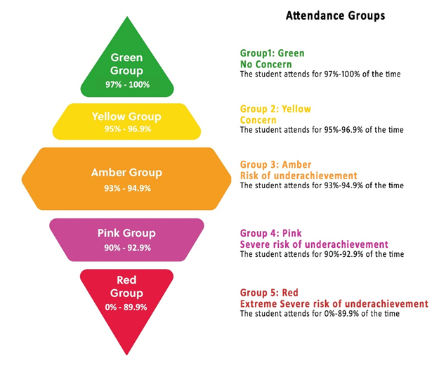 Our aim is to address any issues before any pupil’s attendance falls down to a level where a significant amount of learning is lost.
